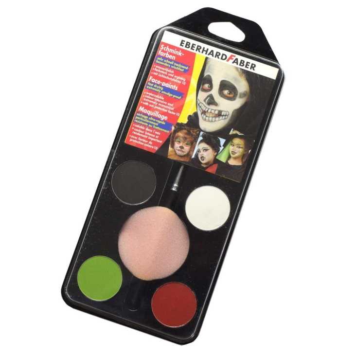 If you would like more information about colours or the product in general, please contact us. here.Makeup box to paint the face of children. It is an ideal makeup kit for carnival week. Palette of colors: 1 black, 1 white, 1 green and 1 red. Includes brush and sponge. With this kit you can also paint the face in Halloween costumes. You can easily paint on the skin. Removes quickly with water. The paint has sun protection 10.