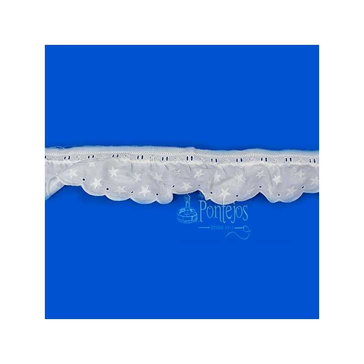 If you would like more information about colours or the product in general, please contact us. here.White embroidered strip; lace, with bodkin, gathered. It has a width of 6cm.Price per meter. The lace will be sent without any cut unless the quantity ordered is more than 11 meters.