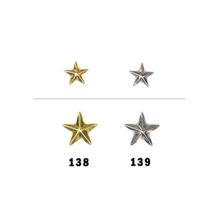 If you would like more information about colours or the product in general, please contact us. here.Thermoadhesive star-shaped studs. Available in gold and silver color and in 9mm and 13mm. This type of studs are perfect for customizing all kinds of garments or accessories. Ideal to put on t-shirts, sneakers, belts, bags, backpacks... They give a personal and rocker touch to your clothes. Thanks to its glue you can easily place them on the fabric by passing the iron over the tack.