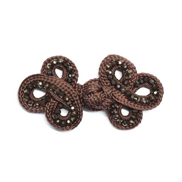 Alamar de pasamanería decorado con pequeñas piezas de pedrería. Mide 9cm de largo (4.5cm cada parte) y 5cm de ancho total. Sus piedras hacen que tenga un brillo especial. Ideal para utilizar como botón en cualquier chaqueta o blazer. Se cose fácilmente a todo tipo de tejidos. Este alamar hará que tu ropa tenga un estilo diferente y más vistoso y llamativo.