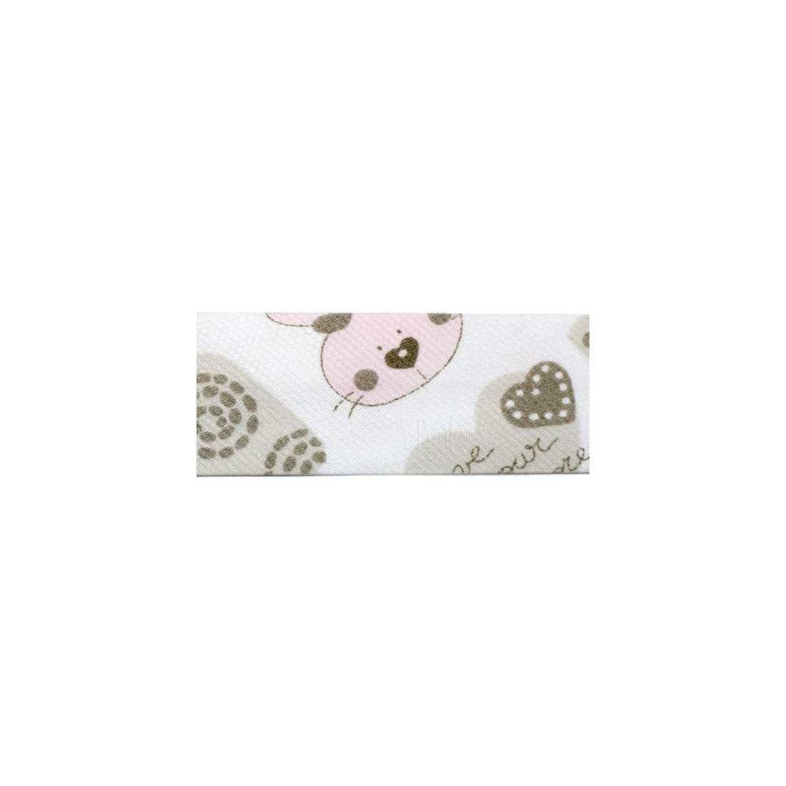 Cinta de bies estampado con ositos. Especial para los remates de tus prendas, labores o manualidades infantiles. Mide 30mm de ancho Composición: 45% Poliéster / 55% Algodón.