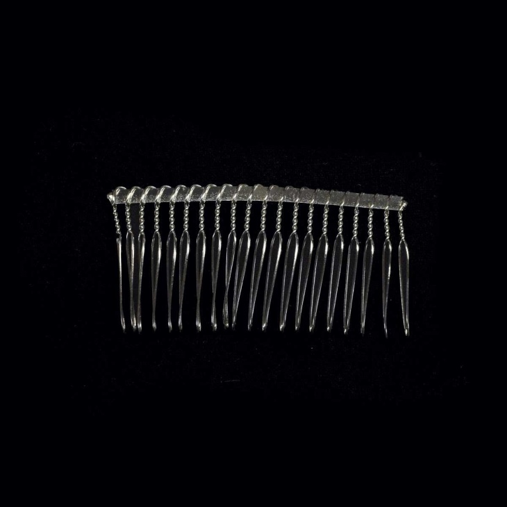 Si desea más información acerca de los colores o del producto en general póngase en contacto con nosotros aquí.Peineta metálica con alambres retorcidos. Disponible en color plateado o color dorado. Esta peineta podrás utilizarla para sujetar el peinado en cualquier evento o ceremonia. Es una peineta que pasará desapercibida en tu peinado. Está hecha de material resistente y duradero. Mide 7cm de largo y 3.5cm de ancho total. Se adaptará perfectamente a la forma de tu cabeza evitando que te haga daño.
