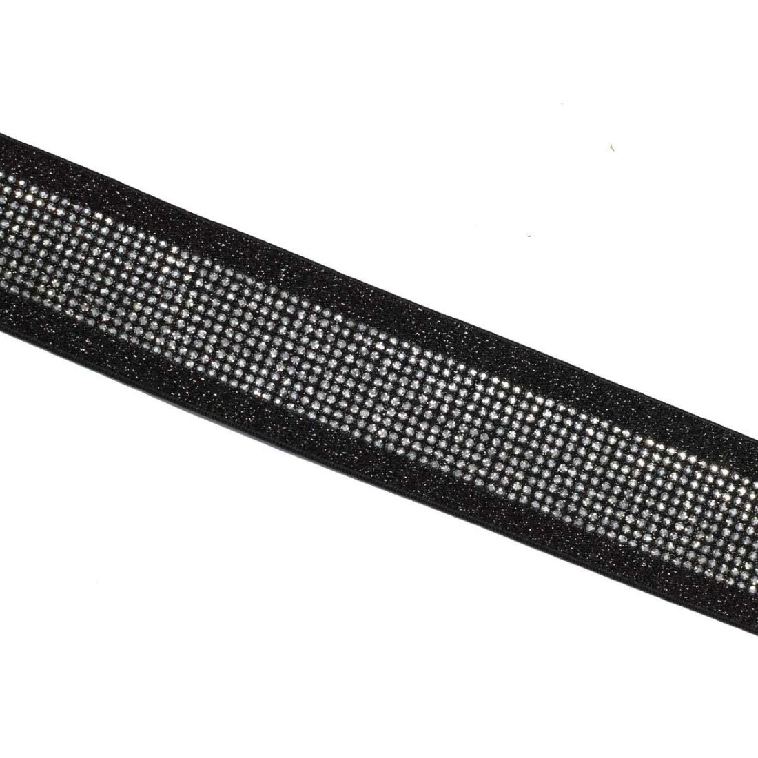Si desea más información acerca de los colores o del producto en general póngase en contacto con nosotros aquí.Cinta de goma con pequeñas piedras brillantes. Disponible en diferentes colores. Mide 4cm de ancho total. Con esta cinta podrás hacer tus propias customizaciones y decorar tus prendas o accesorios. Tiene una elasticidad media. Sus piedras brillantes aportarán mucha luz a tus proyectos. Ideal para coser en cualquier vestido, falda, chaqueta, bolsa... Precio por metro