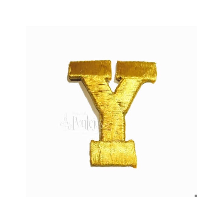 Si desea más información acerca de los colores o del producto en general póngase en contacto con nosotros aquí.Aplicación bordada inicial en color dorado letra Y mide aprox.5cm de ancho es adhesiva se pega con la plancha sin vapor. Precio por unidad.