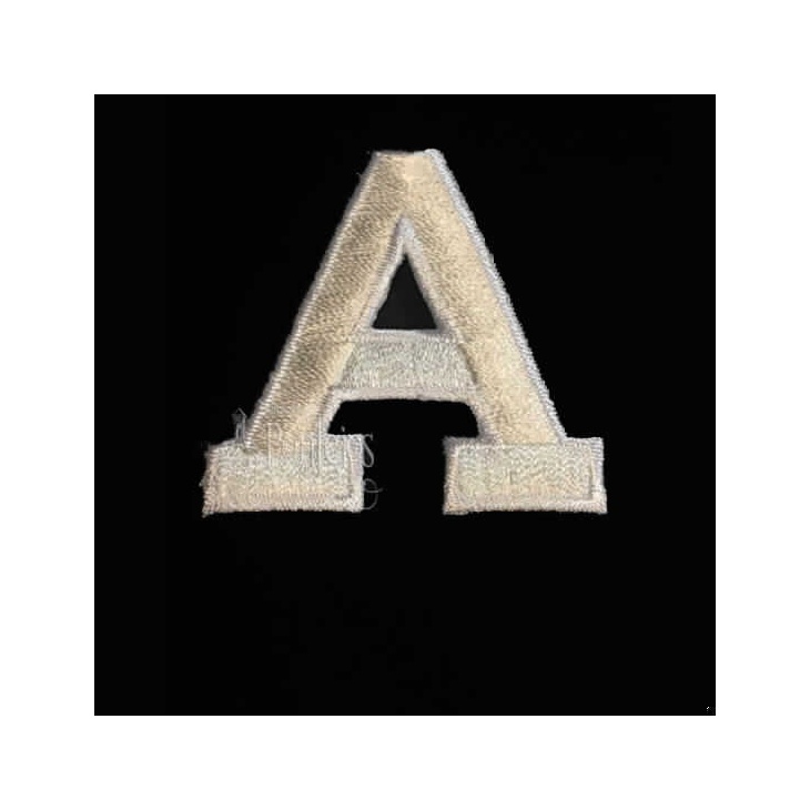 Si desea más información acerca de los colores o del producto en general póngase en contacto con nosotros aquí.Aplicación bordada inicial en color blanco letra A mide aprox.5cm de ancho es adhesiva se pega con la plancha sin vapor. Precio por unidad.