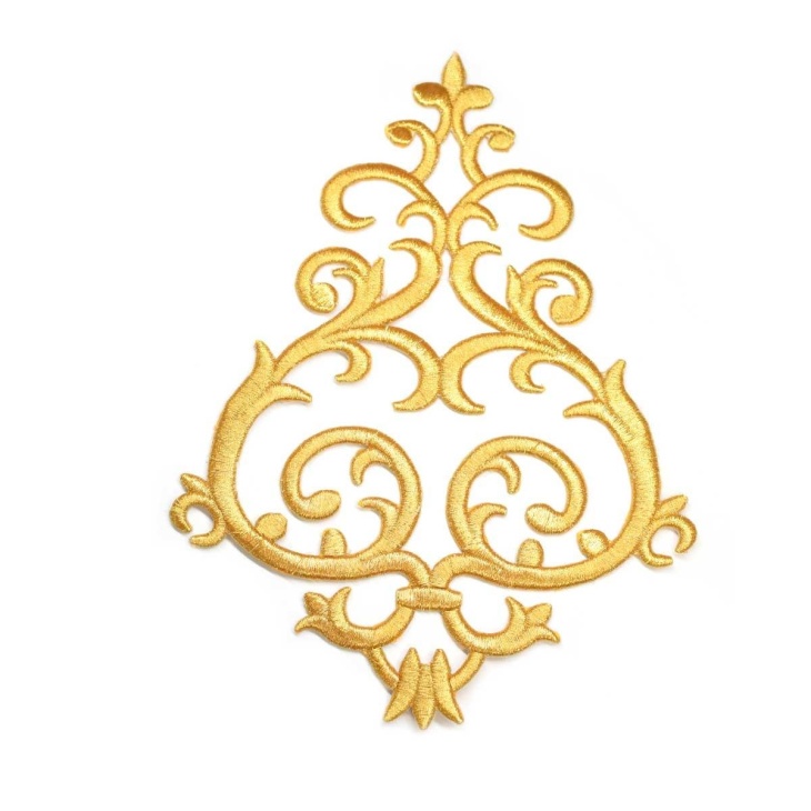 Si desea más información acerca de los colores o del producto en general póngase en contacto con nosotros aquí.Aplicació de cruz en color dorado. Esta aplicación termoadhesiva es perfecta para poder adornar o decorar accesorios o prendas. Ideal para pegar en vestidos, mantos, manteles o todo tipo de artículos religiosos. La aplicación mide 28cm de largo y 19cm de ancho. Se pega fácilmente con la plancha sobre cualquier tipo de tejido. Es muy vistosa y llamativa, con un acabado de gran calidad.