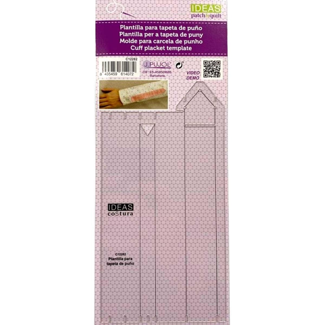 Si desea más información acerca de los colores o del producto en general póngase en contacto con nosotros aquí.Regla para tapeta de puño. Esta regla es perfecta para poder hacer tus propios puños de forma sencilla y cómoda. Esta regla transparente te permitirá trabajar sobre tus proyectos de costura y patronaje. Mide 17cm de largo y 10cm de ancho total. Tiene cierta flexibilidad para que puedas trabajar más cómodamente.