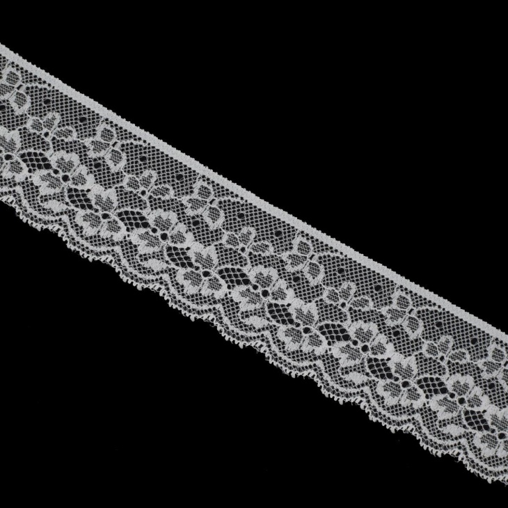 Elegante puntilla de encaje con un ancho total de 4 cm, perfecta para aportar un acabado decorativo y artesanal a prendas y proyectos de costura. Su diseño floral con delicados bordes ondulados aporta un estilo clásico y romántico, ideal para embellecer vestidos, blusas, trajes de ceremonia, ropa infantil o artículos de hogar.