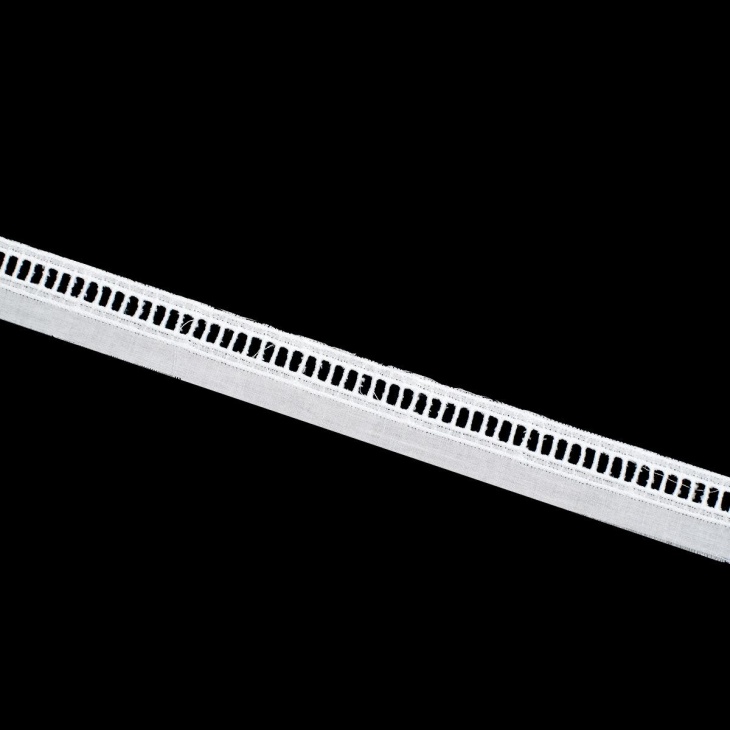 Tira bordada de 2 cm de ancho, ideal para aportar un acabado delicado y decorativo a prendas y proyectos de costura.