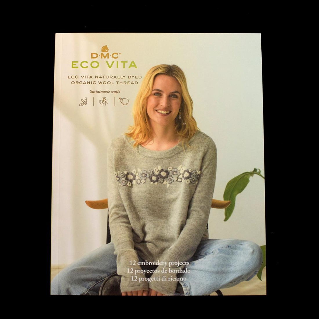 Magazine DMC Eco Vita gathers 12 embroidery projects designed to work with the threads Eco Vita, elaborated with organic wool and dyed naturally. Includes modern, sustainable and welcoming style ideas, perfect for personalizing garments, accessories or decoration elements.