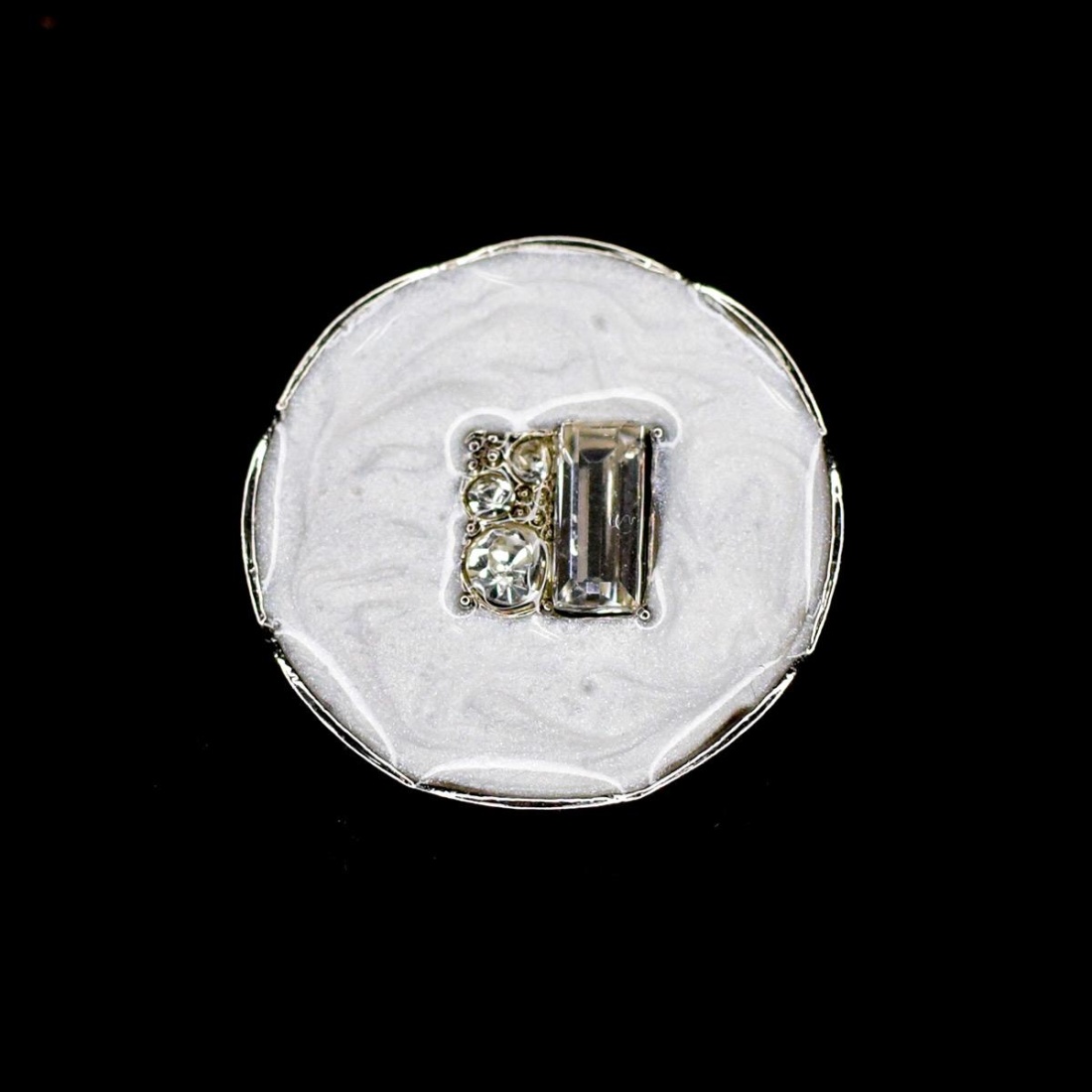 Metallic button enameled with decorative design and strass detail, ideal for providing an elegant and original touch to all types of garments.