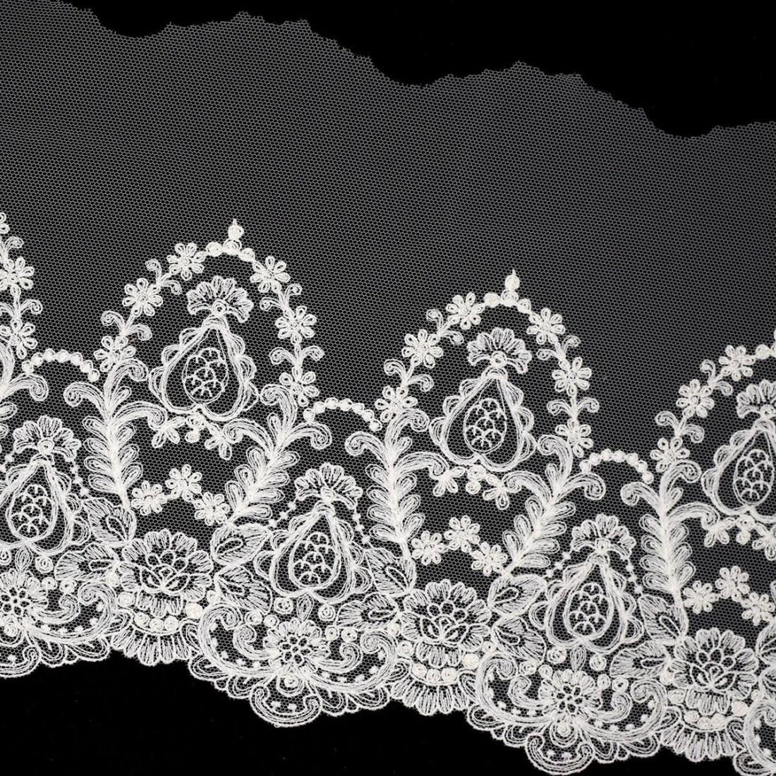 If you would like more information about colours or the product in general, please contact us. here.This tulle Embroidery stands out for its delicacy and detail, offering an elegant design that combines floral and ornamental motifs with a sophisticated finish.