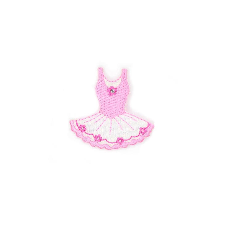 If you would like more information about colours or the product in general, please contact us. here.Parche termoadhesivo bordado con la silueta de un tutú de ballet en color rosa, un diseño elegante y delicado que simboliza la esencia de la danza clásica. Con unas medidas de 4,2 cm x 4,2 cm, es el complemento perfecto para decorar camisetas, chaquetas, mochilas, bolsas de danza o accesorios infantiles, aportando un toque creativo y muy femenino.
