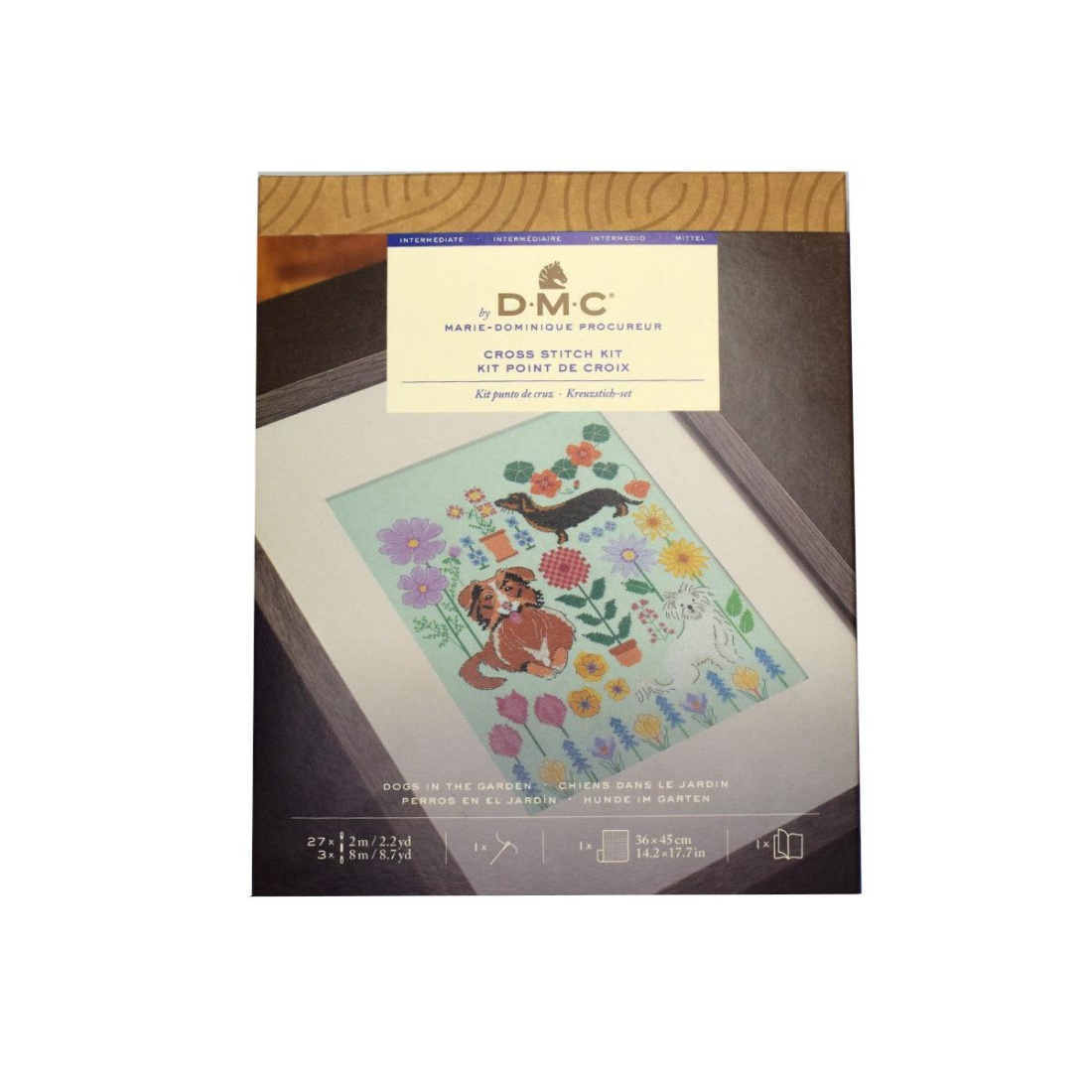 Kit Point of cross Dogs in the garden - cross stitch dmckit DMC "Dogs in the garden", with a charming design that represents dogs between flowers and butterflies in a natural environment. Ideal for those who enjoy the embroidery with animal and floral motifs, this kit Intermediate level offers a relaxing and rewarding creative experience. Includes threads Mouliné DMC, Aida fabric, needle and complete instructions to facilitate each step.
