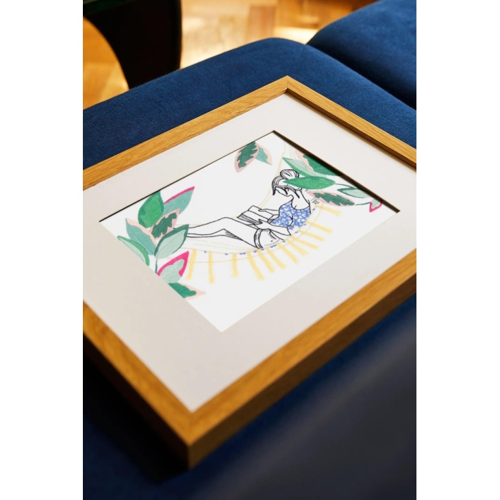 If you would like more information about colours or the product in general, please contact us. here.He gives life to this serene design embroidered a scene charged with calm and beauty, created by the designer Joanna Hateley. The kit It shows a lady reading placidly in a hammock, surrounded by green leaves that bring freshness and serenity. The fabric comes preprinted, so you can start embroider without having to mark anything: just open the kit And let yourself be carried away by the needle.