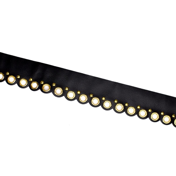 A trimming Modern and elegant, manufactured in imitation skin and decorated with metallic ollaos that provide a sophisticated and current finish to any project. Perfect for garments, accessories, belts, bags and decorative details that look for a distinctive and resistant touch.