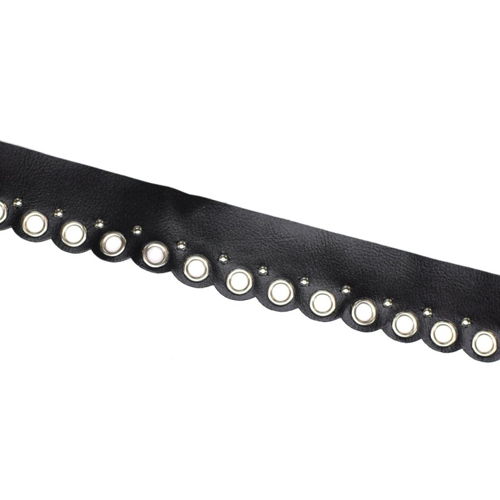 A trimming Modern and elegant, manufactured in imitation skin and decorated with metallic ollaos that provide a sophisticated and current finish to any project. Perfect for garments, accessories, belts, bags and decorative details that look for a distinctive and resistant touch.