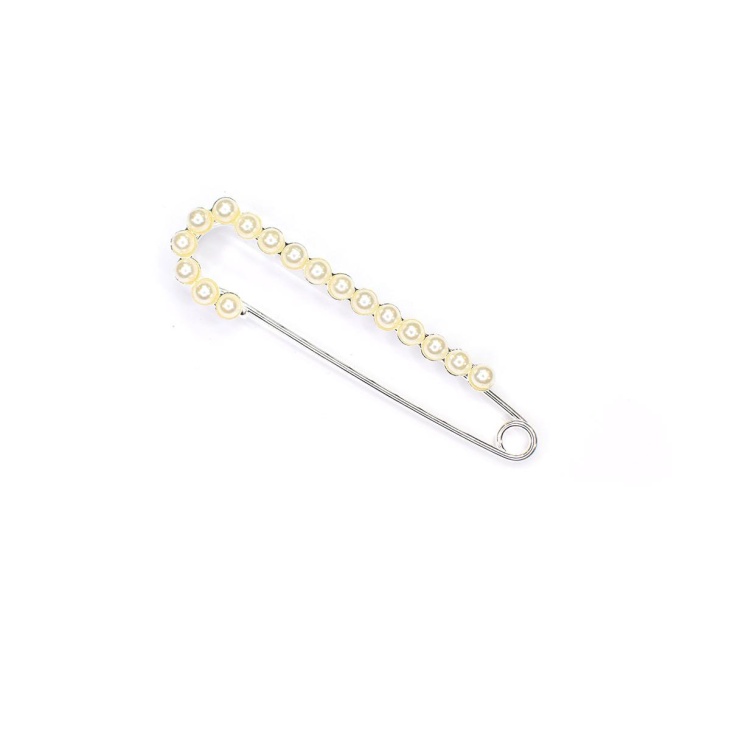 Its design incorporates a resistant metal structure that ensures a firm and safe grip, allowing it to be easily fixed on jackets, scarves, blankets, coats or foils. The decorative pearls lined throughout the body provide sophisticated air, making it a perfect accessory for both formal looks and more casual styles with a distinguished touch.
