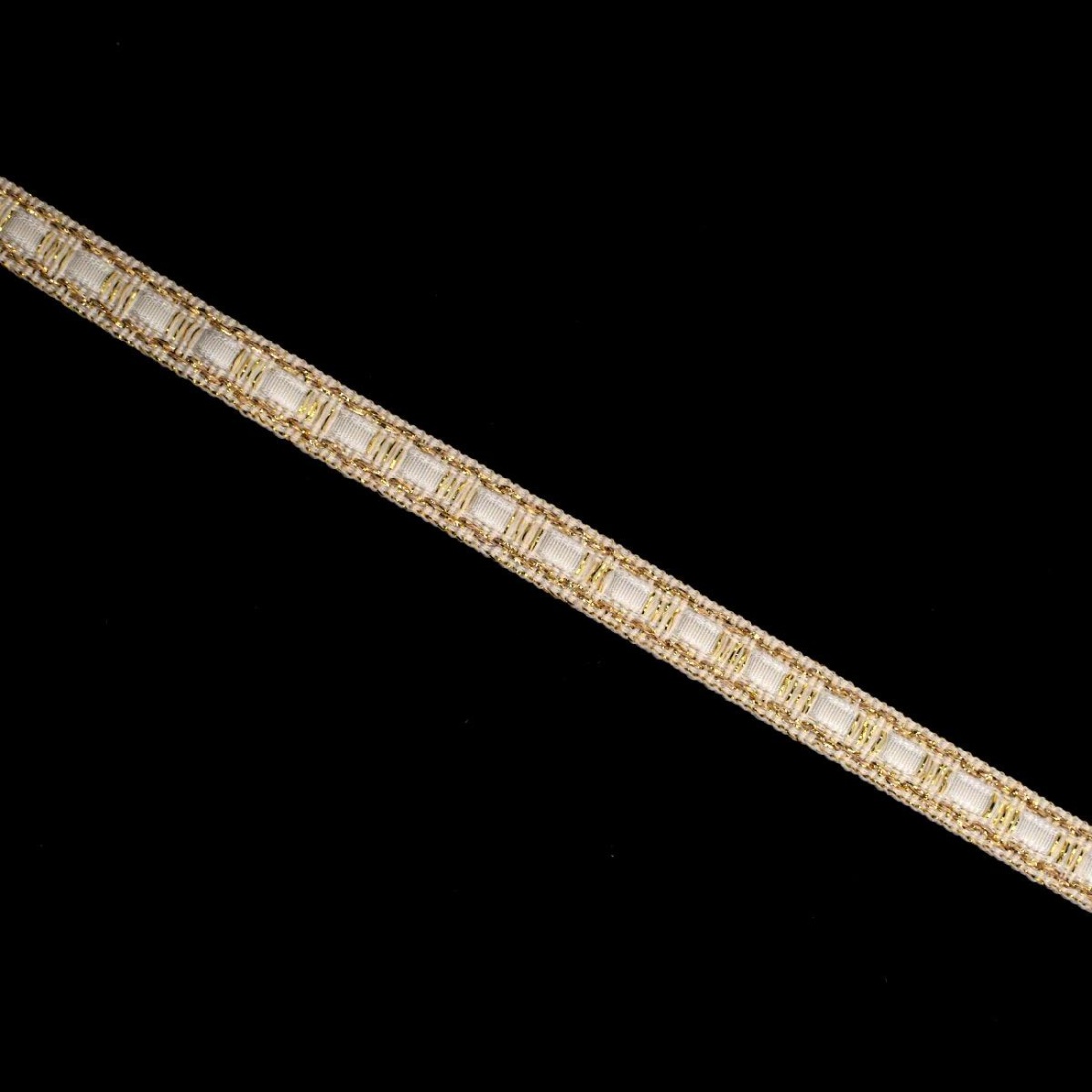 If you would like more information about colours or the product in general, please contact us. here.Trimming Decorative 1 cm wide, available in different colors, perfect to give an elegant and detailed finishing, add-ons or decoration items. Its fine and delicate design combines threads Of different tones with a subtle golden brightness, providing a sophisticated visual effect that enhances any sewing or craft project.