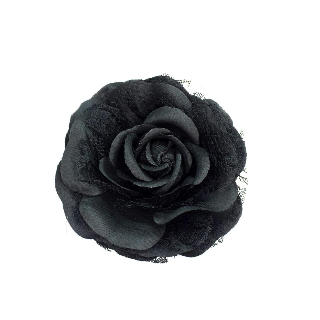 Black rose headdress made of soft tissue and with an elegant finish, perfect for a distinguished touch to hairstyles, party looks or more formal styles.