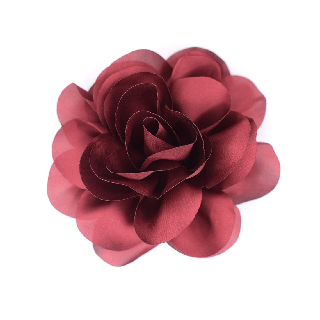 Decorative satin flower with clasp, 11 cm diameter, made with superimposed petals that provide volume and an elegant finish.