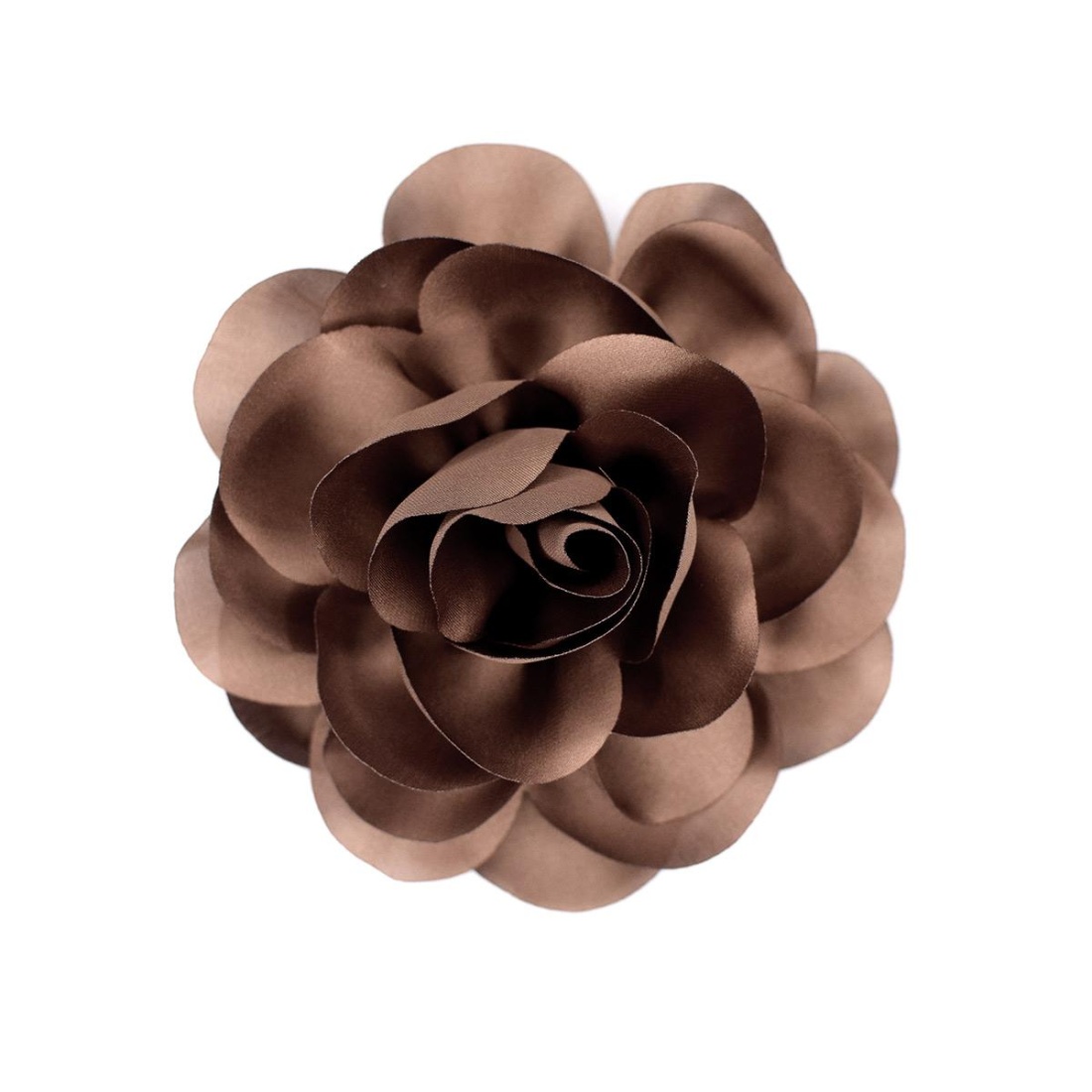 Decorative satin flower with clasp, 11 cm diameter, made with superimposed petals that provide volume and an elegant finish.