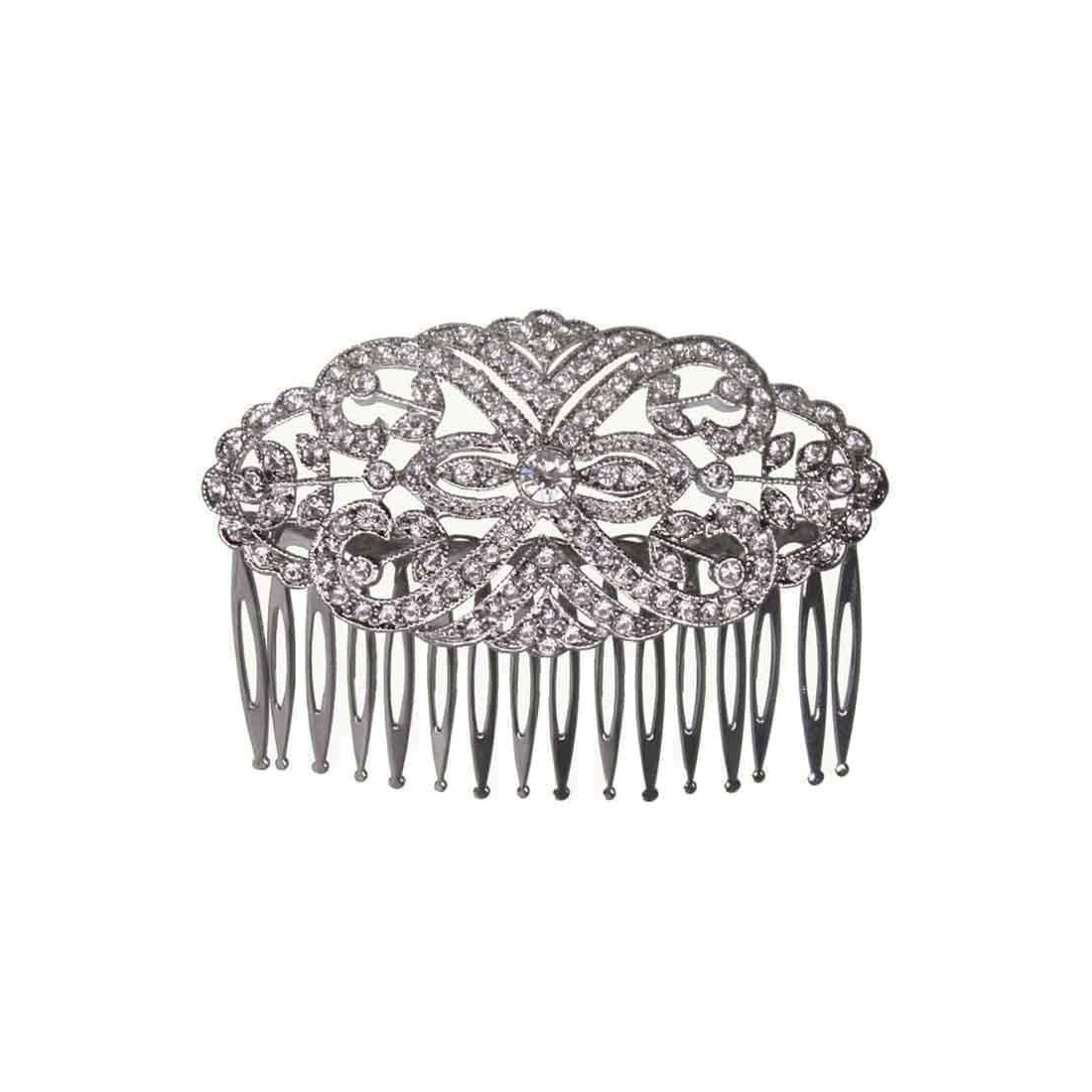 If you would like more information about colours or the product in general, please contact us. here.Glass comb in silver finish, an ideal elegant and bright complement to enhance ceremony hairstyles and special events.