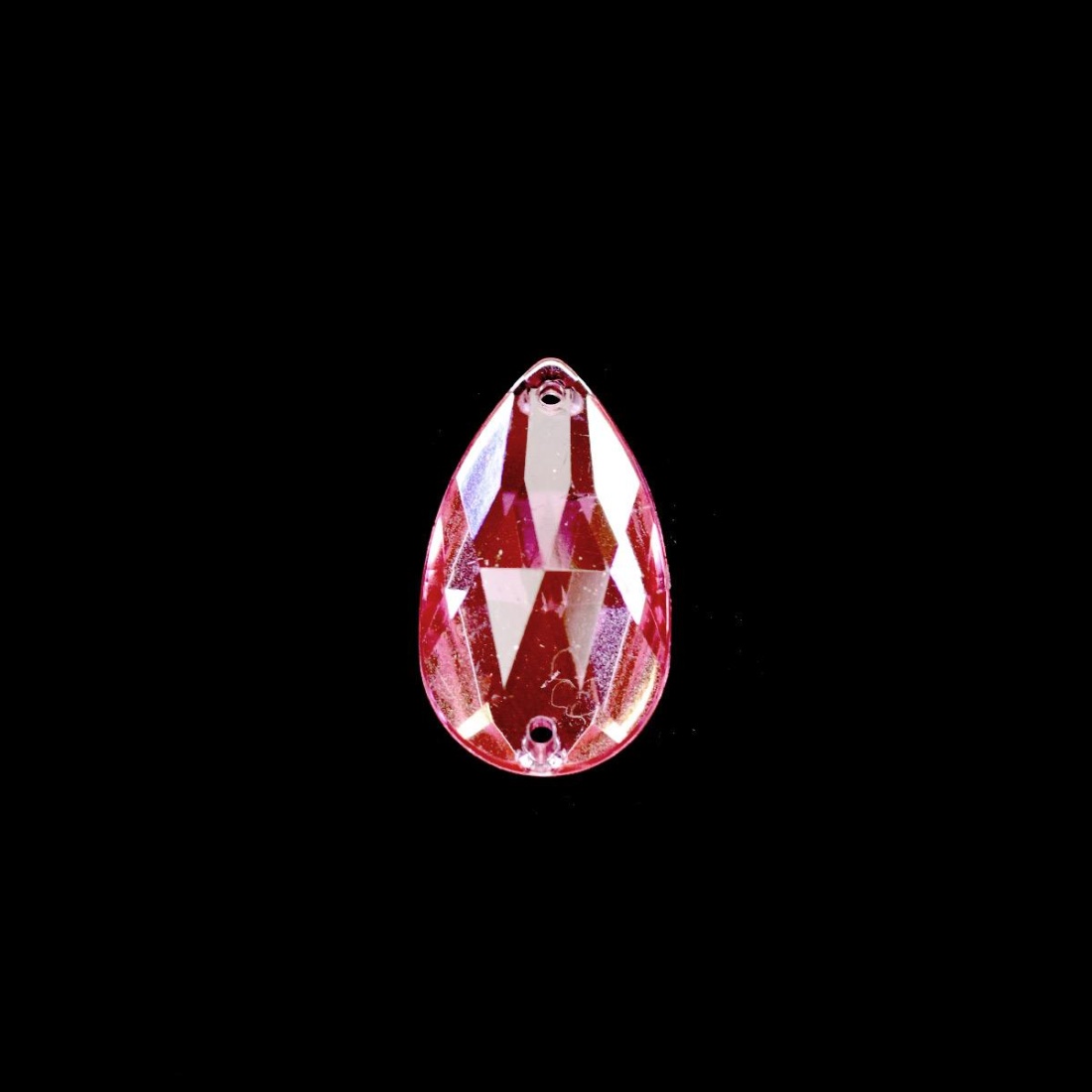 Piedra para coser en forma de lágrima de 10 × 20 mm, con acabado facetado que refleja la luz y aporta un brillo intenso y elegante.