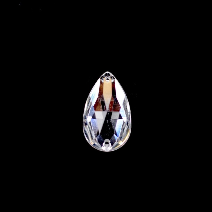 Piedra para coser en forma de lágrima de 10 × 20 mm, con acabado facetado que refleja la luz y aporta un brillo intenso y elegante.