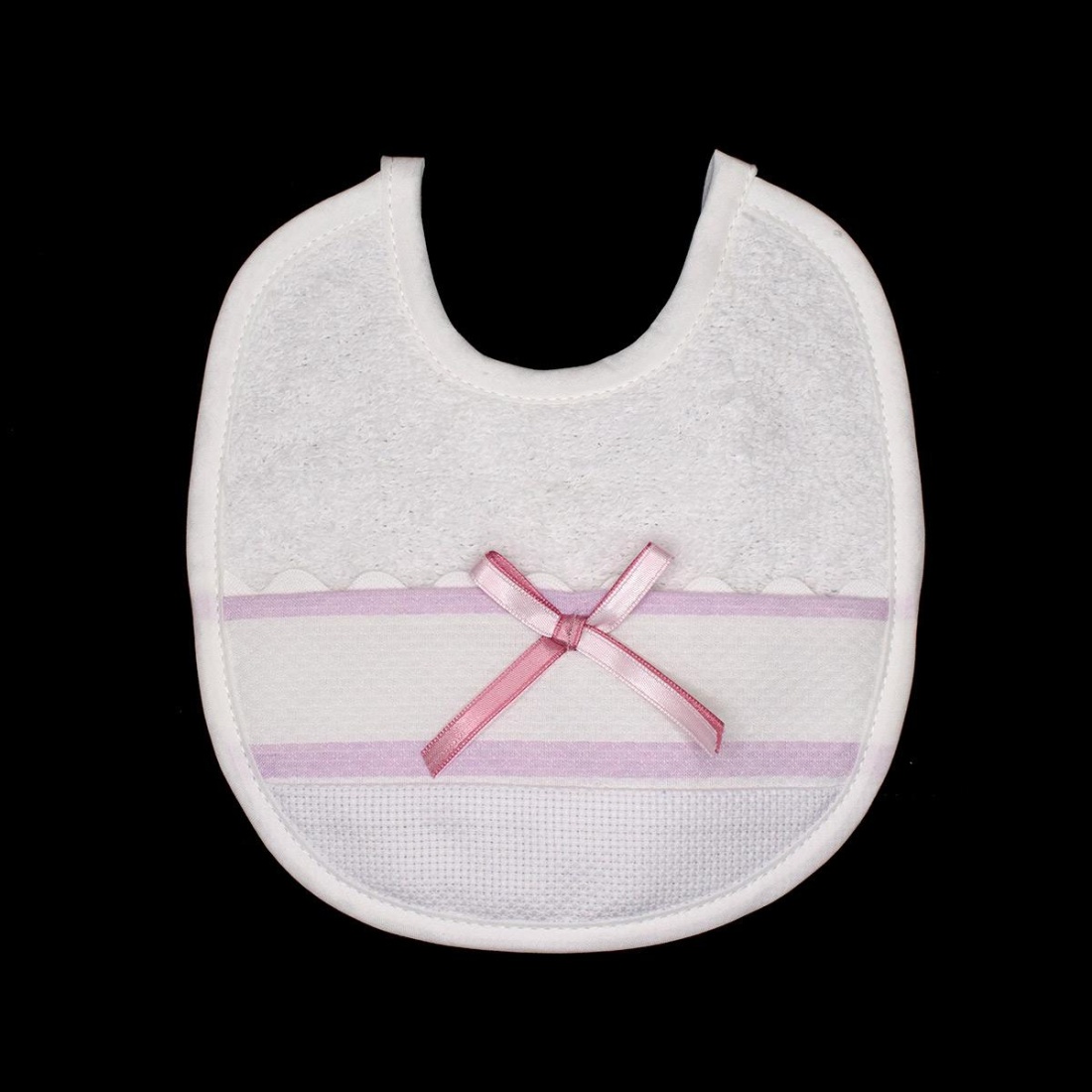 Babero de rizo suave con detalle de lazo y franja decorativa, perfecto para las primeras comidas del bebé gracias a su tamaño manejable y su tacto agradable. Incorpora zona inferior panamá ideal para personalizar con bordados, nombres o iniciales. Un accesorio práctico y delicado para el día a día.
