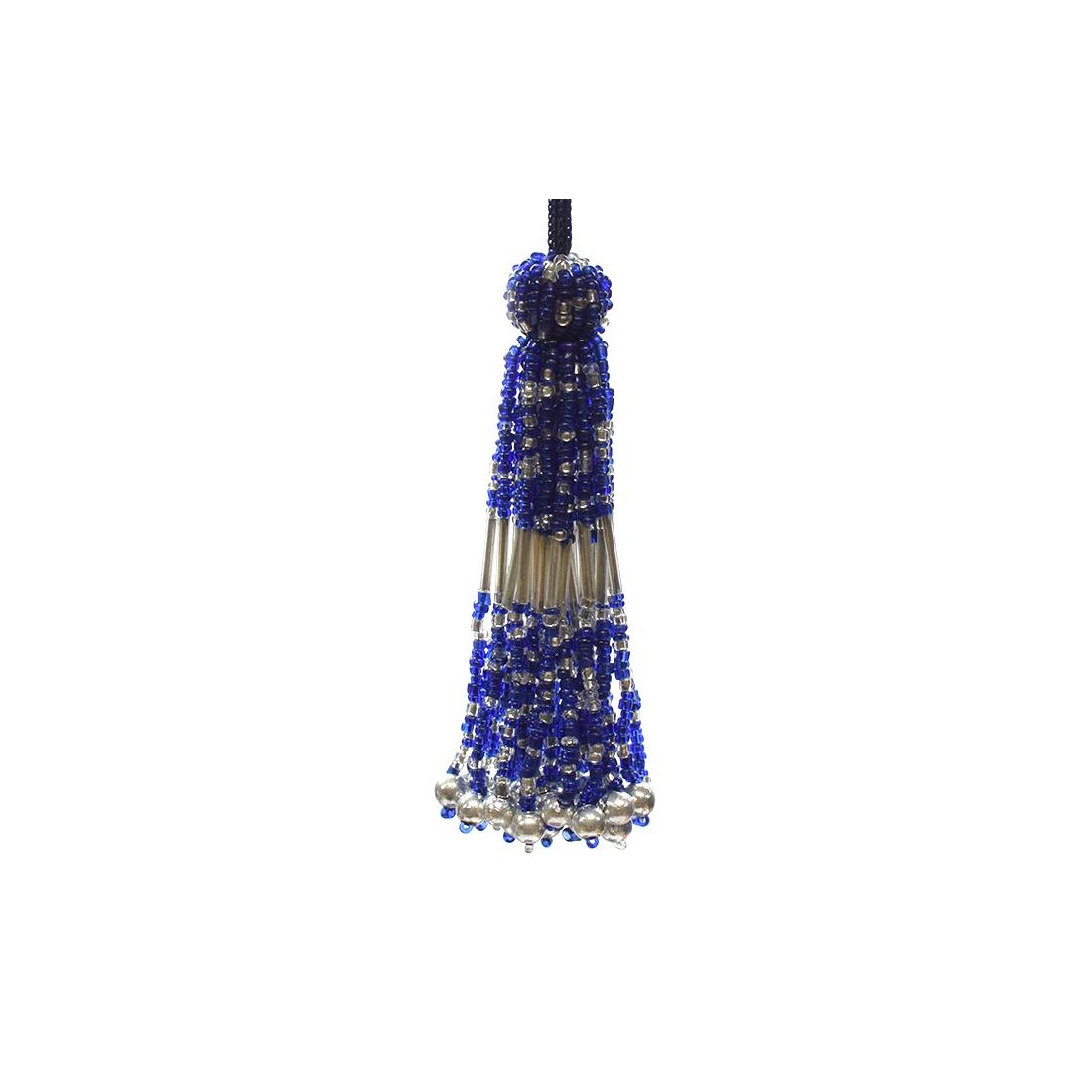 Borla fantasia, todo rocalla, de largo 9cm sin contar con el cordón, disponible en varios colores. Ideal para decoración de pomos o tiradores de llaves de las puertas, armarios, cajoneras. Adorna tus bolsos, chales, monederos, y todo tipo de manualidades.