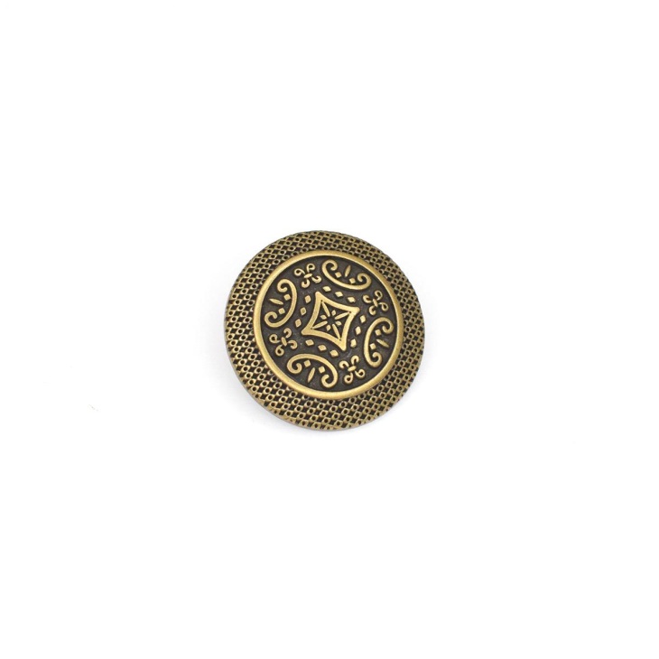 Si desea más información acerca de los colores o del producto en general póngase en contacto con nosotros aquí.Este elegante botón metálico con acabado envejecido es una opción ideal para aportar un toque sofisticado y original a tus prendas de vestir y proyectos de costura. Su diseño en relieve con motivos decorativos le confiere un estilo clásico y atemporal, perfecto para chaquetas, abrigos, chalecos, prendas artesanales o accesorios de moda. Fabricado en metal de alta resistencia, garantiza durabilidad y un acabado impecable incluso tras un uso continuado.