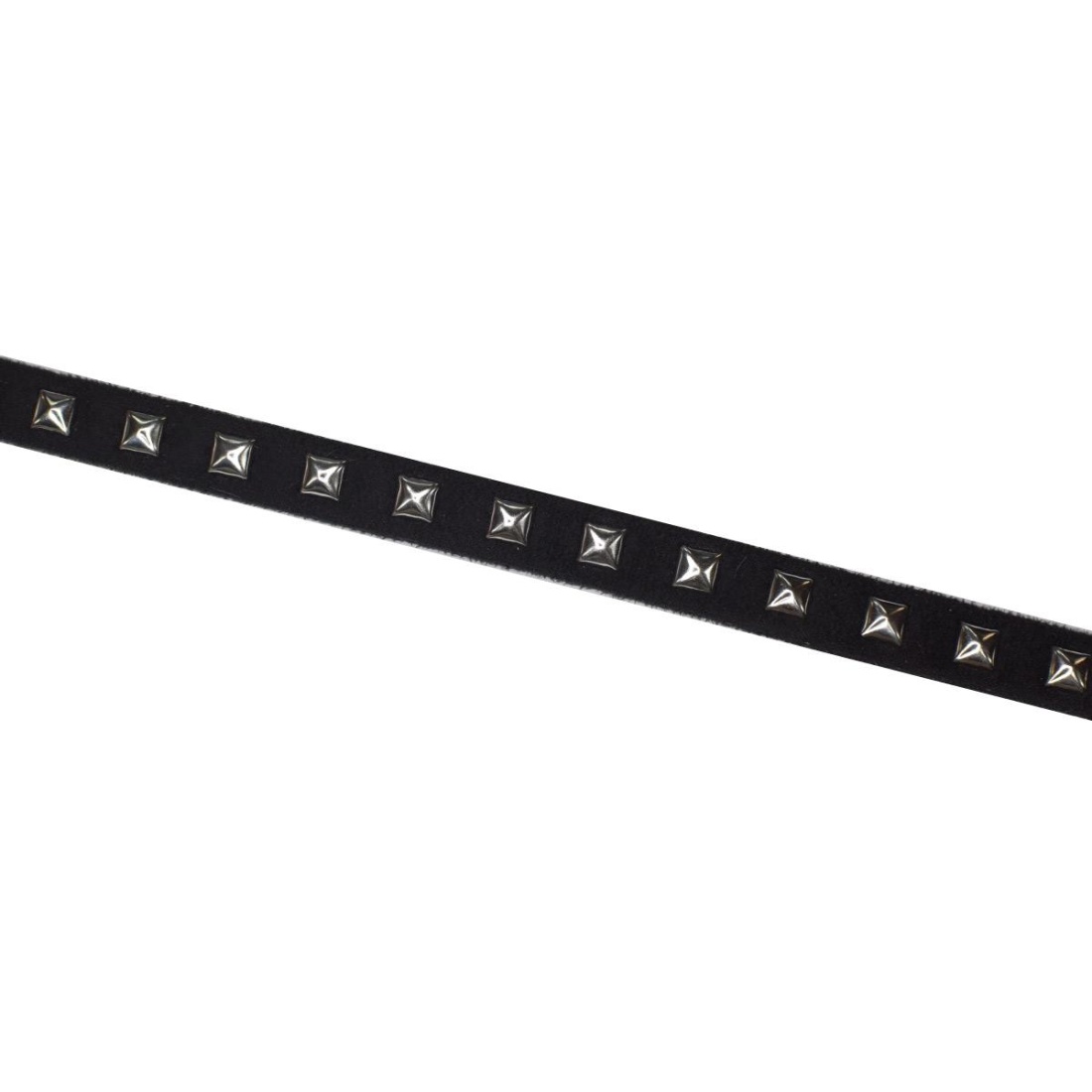Cinta de antelina con tachas metálicas de 1 cm de ancho, ideal para aportar un toque moderno y con carácter a todo tipo de proyectos de costura, moda y customización.
