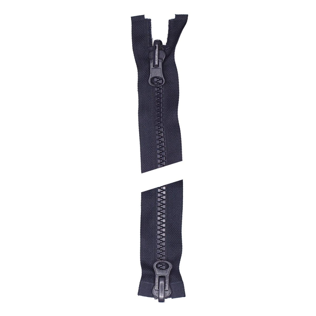 Cremallera de plástico nº 8, gruesa y resistente, con dos cursores reversibles, perfecta para prendas y proyectos que requieren apertura en ambos sentidos, como abrigos, chaquetas técnicas, equipajes o accesorios de uso intensivo.