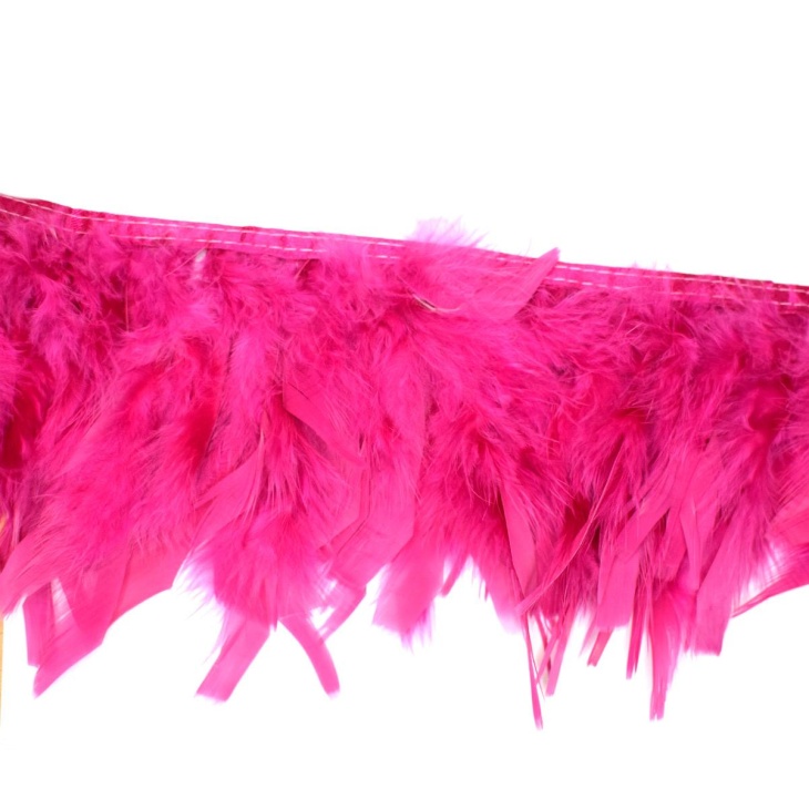 Fleco de plumas con un ancho de 10cm. Son ideales para la confección de trajes, abrigos, sombreros o tocados. Su presentación "despeinada" hace que se pueda combinar en cualquier aplicación. Gran suavidad y densidad. Cabezal con cinta de raso. Disponible en varios colores. Precio por metro.