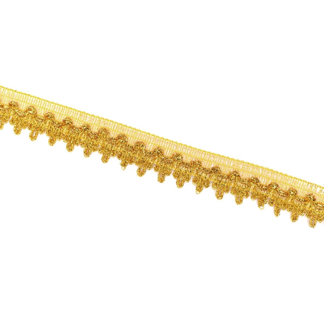 Si desea más información acerca de los colores o del producto en general póngase en contacto con nosotros aquí.Galón metalizado color dorado de 25 mm de ancho, con un original diseño de picos decorativos que añade brillo y textura a cualquier prenda o proyecto artesanal. Perfecto para bordes de trajes regionales, ropa festiva, disfraces, cortinas, cojines y artículos de decoración.
