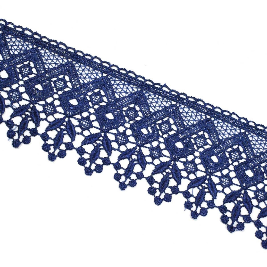 Si desea más información acerca de los colores o del producto en general póngase en contacto con nosotros aquí.Con esta puntilla de guipure podrás rematar todos tus proyectos aportándoles un estilo más vistoso y llamativo. Mide 8cm de ancho total. Es un encaje de guipure de gran calidad perfecto para coser en cualquier vestido, escote, chaquetilla, bolsa... Disponible en diferentes colores. Precio por metro.