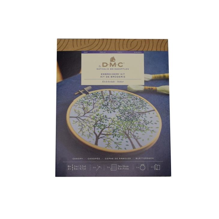 Si desea más información acerca de los colores o del producto en general póngase en contacto con nosotros aquí.KIT DE BORDADO DMC – COPAS DE ÁRBOLESKit de bordado DMC “Copas de árboles”, un diseño inspirado en la naturaleza con ramas y hojas verdes que transmiten frescura y equilibrio. De nivel fácil, es perfecto para iniciarse en el bordado y disfrutar de una experiencia relajante y creativa. Incluye hilos Mouliné DMC, tela, aguja, bastidor e instrucciones claras para seguir el proceso sin dificultad.