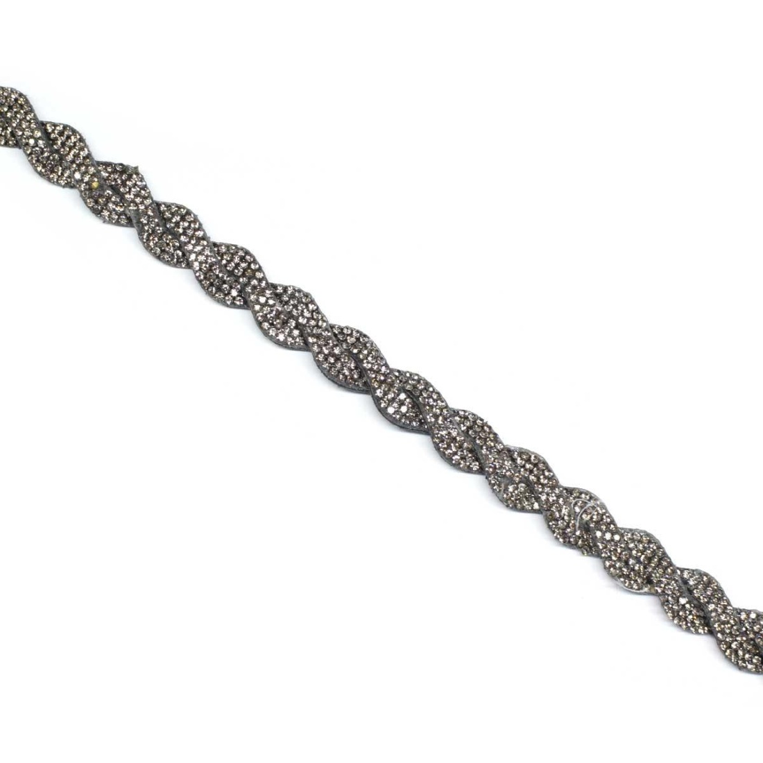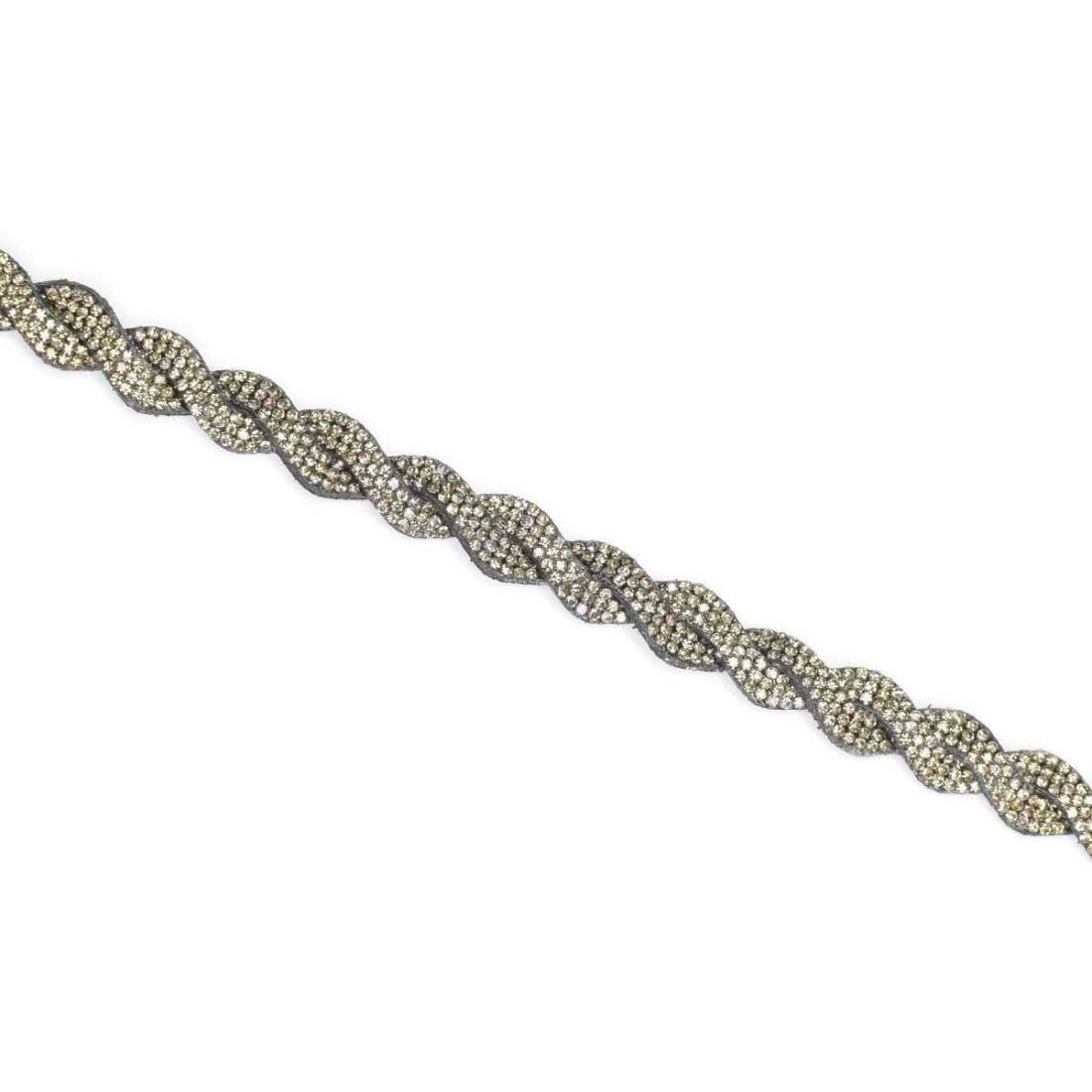 Si desea más información acerca de los colores o del producto en general póngase en contacto con nosotros aquí.Exquisita pasamanería de pedrería trenzada, adornada con pequeñas piedras de strass brillante, ideal para agregar un toque de elegancia y brillo a tus proyectos de costura o manualidades. Disponible en diferentes colores, esta delicada pasamanería tiene un ancho total de 1 cm, lo que la hace perfecta para decorar prendas, complementos, y accesorios de moda. Precio por metro, permitiendo que adquieras la cantidad exacta que necesitas para embellecer tus creaciones con un acabado refinado y deslumbrante.