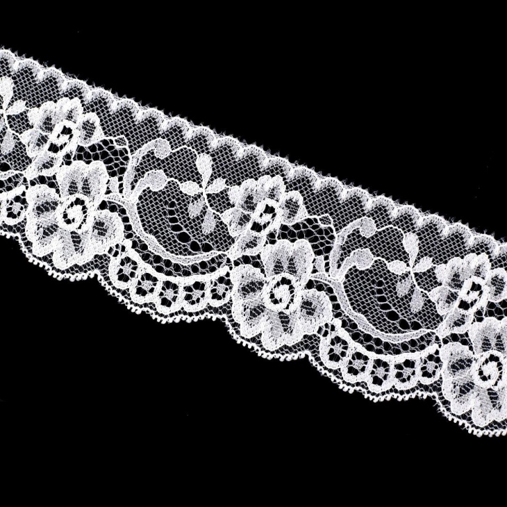 Si desea más información acerca de los colores o del producto en general póngase en contacto con nosotros aquí.Encantadora puntilla de nylon con un ancho total de 5,5 cm, ideal para aportar un acabado delicado y elegante a todo tipo de proyectos de costura. Su diseño calado con motivos florales o geométricos y su textura suave hacen que sea perfecta para decorar prendas, vestidos, ropa infantil, ropa interior, artículos de hogar o complementos textiles.