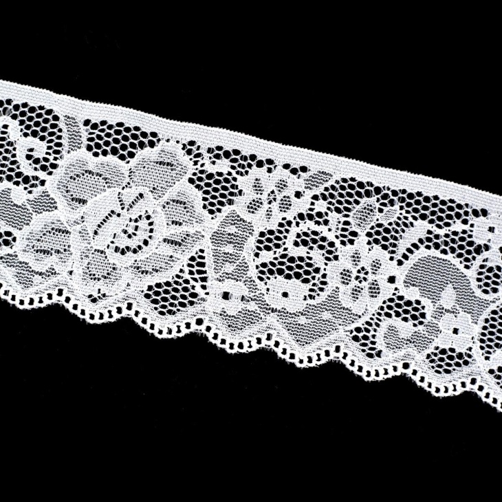 Delicada puntilla elástica con un ancho total de 6 cm, ideal para aportar un toque decorativo y cómodo a tus creaciones textiles. Su composición elástica permite que se adapte perfectamente a diferentes tejidos y formas, lo que la hace perfecta para ropa interior, camisones, prendas elásticas, ropa infantil o accesorios de moda.