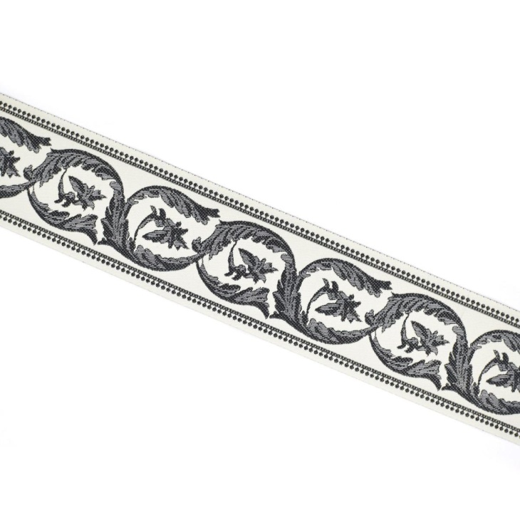 Tapacosturas con diseño de hojas de laurel, confeccionado con hilos de alta calidad que aportan relieve, elegancia y resistencia. Perfecto para decorar y rematar cortinas, cojines, manteles o prendas de vestir, aportando un acabado profesional y sofisticado.