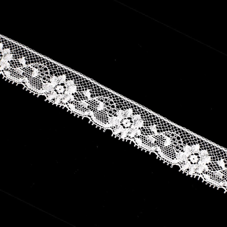 Delicada puntilla valencienne con un ancho total de 2 cm, ideal para añadir un toque elegante y artesanal a tus proyectos de costura. Su diseño clásico con motivos calados aporta una textura sutil y refinada, perfecta para decorar prendas, ropa de bebé, trajes de comunión, ropa interior, complementos o artículos de hogar.